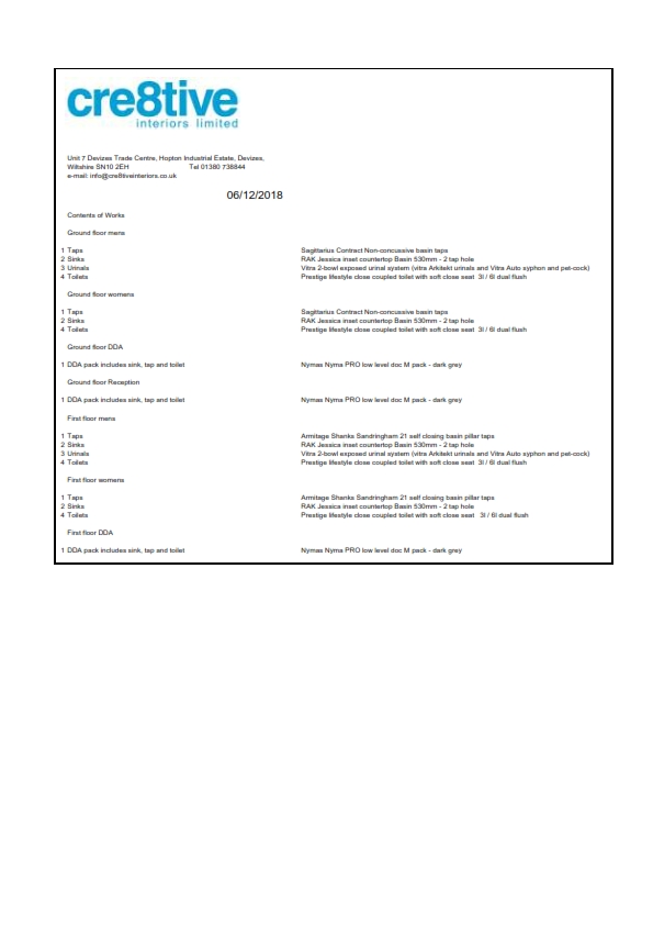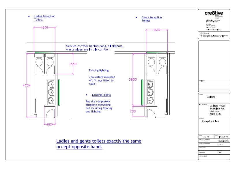 As well as replacing all of the vanity units and cubicle systems, all of the sanitary wear, taps and ancillaries were replaced. Also replaced were the suspended ceilings, lighting and flooring. Everything we usually do for an office refurbishment, so well within our skill set of what we can do. The first task as always, is to draw everything and work out the costs versus the finishes to get with the budget. Bearing in mind although the figure seems high, there were 4 big toilet blocks to do, as well as the small disabled toilet at the front of the building so quite a bit of work.