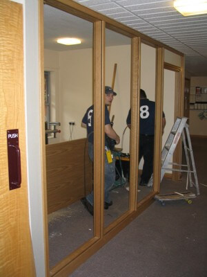 This project included the installation of a new Timber Demountable Partitioning System in order to create private meeting space while giving a clean professional look to the existing corridor. The project was fairly unusual in that the partition system although demountable; is actually made from Timber. the basic framework is still metal stud and plasterboard and the timber trims are fitted around the walls, as well as full timber door frames used to match in with the rest of the product.